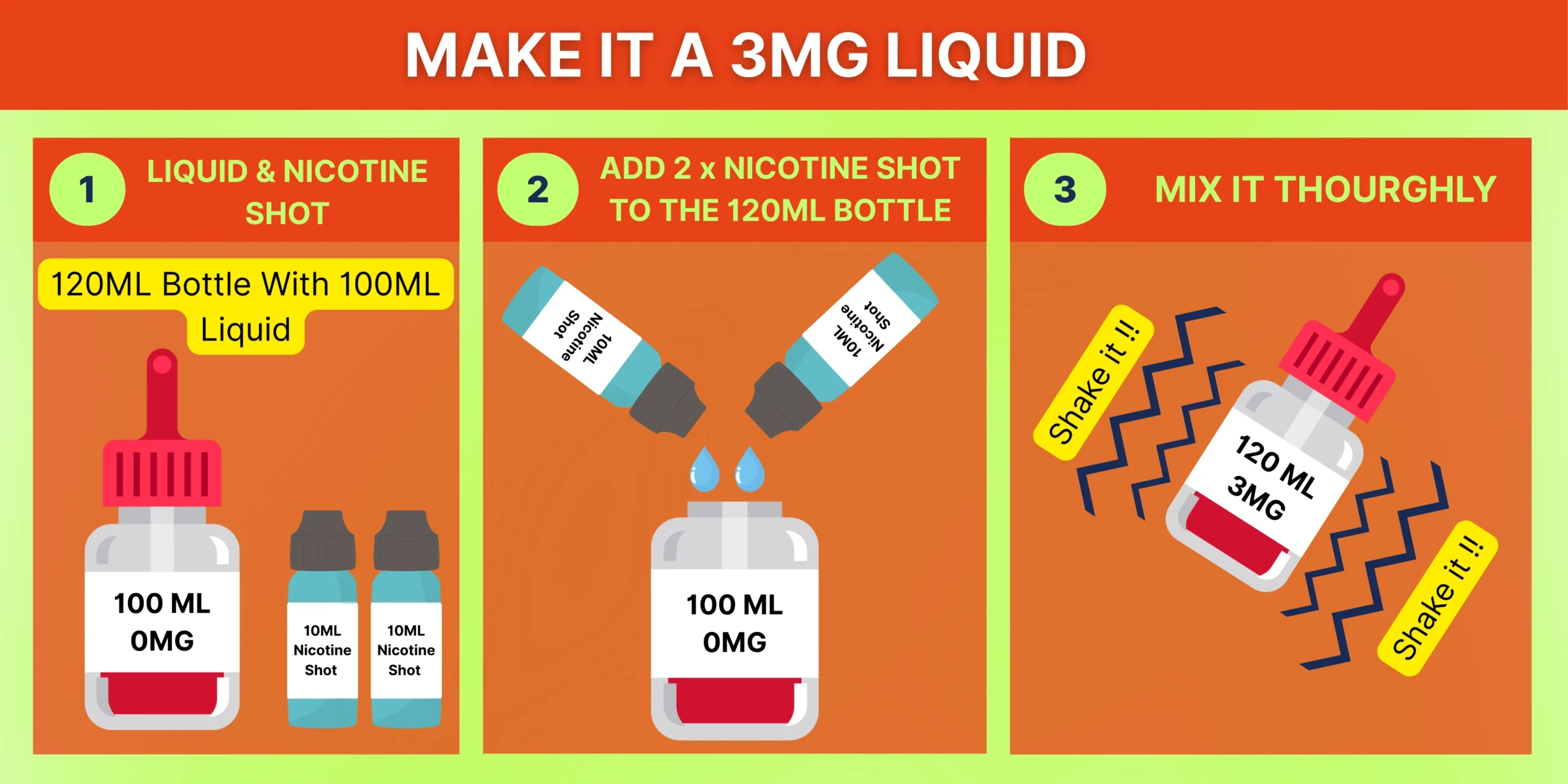 This is 100ml of 0mg e-liquid, supplied in a 120ml short fill bottle, this leaves room for the 2 x nicotine shots to make 3mg of 120ml e-juice. Please shake the product together thoroughly and each time you use. Nicotine is addictive, please use carefully.
